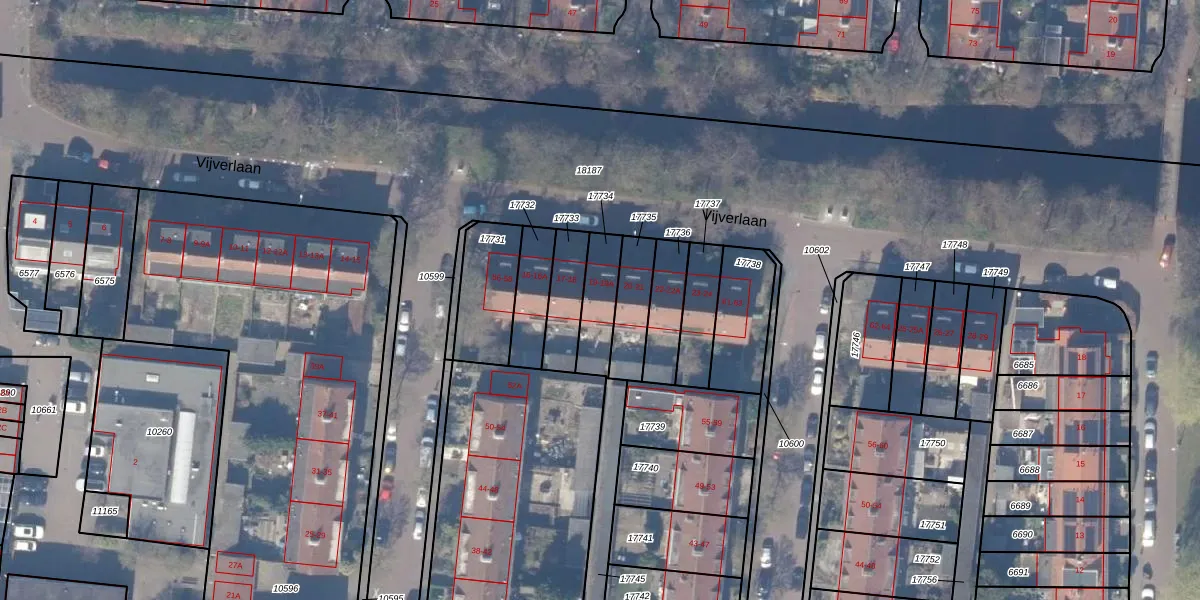 Vijverlaan 19-A is gelegen op kadastraal perceel ASV00H17734. Deze kadastrale aanduiding is uniek en wordt gebruikt door het Kadaster om eigendomsrechten en andere zakelijke rechten vast te leggen. Het perceel maakt onderdeel uit van de kadastrale gemeente Amstelveen.