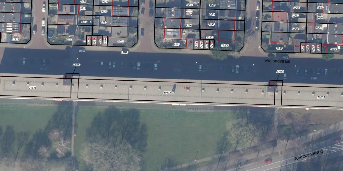 Het adres ligt op het perceel ASV00-H-10632, dat zich in de kadastrale gemeente Amstelveen bevindt. Het perceel is 1291 m² groot. Dat is kleiner dan de gemiddelde perceeloppervlakte in Amstelveen, dat op 1598,49 m² ligt. De grootste perceeloppervlakte in de kadastrale gemeente is 1,78 km². De kleinste oppervlakte bedraagt 0 m². Er zijn 66 adressen aanwezig op het perceel. In de Basisregistratie Kadaster (BRK) werden de grenzen van het perceel geregistreerd op 24-01-2011.