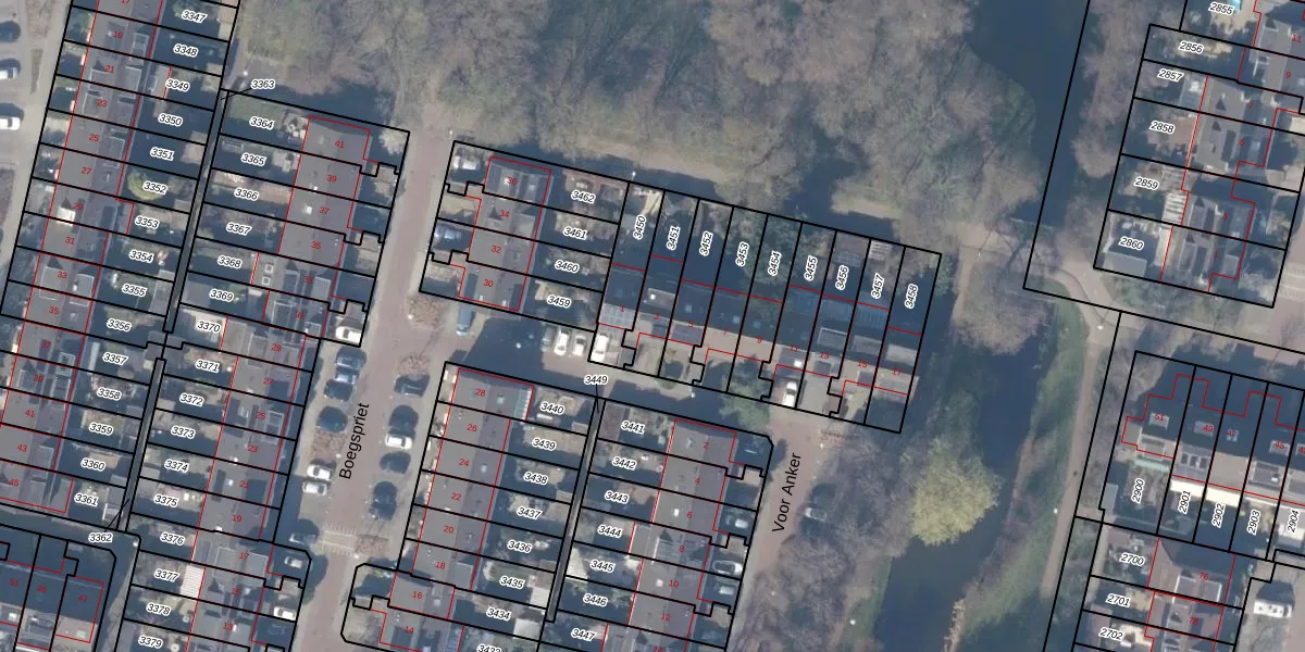 Gebruik de zoekbalk of klik op een perceel voor informatie over de adressen binnen dit perceel.