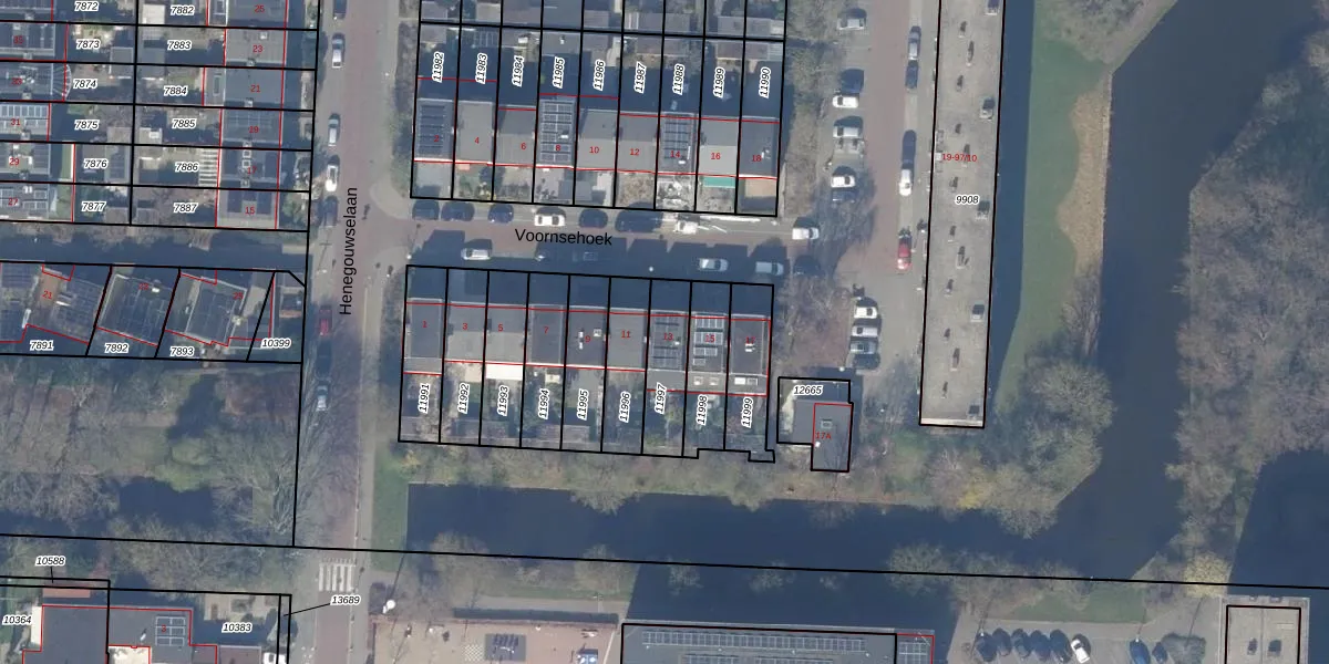Voornsehoek 13 is gelegen op kadastraal perceel ASV00H11997. Deze kadastrale aanduiding is uniek en wordt gebruikt door het Kadaster om eigendomsrechten en andere zakelijke rechten vast te leggen. Het perceel maakt onderdeel uit van de kadastrale gemeente Amstelveen.