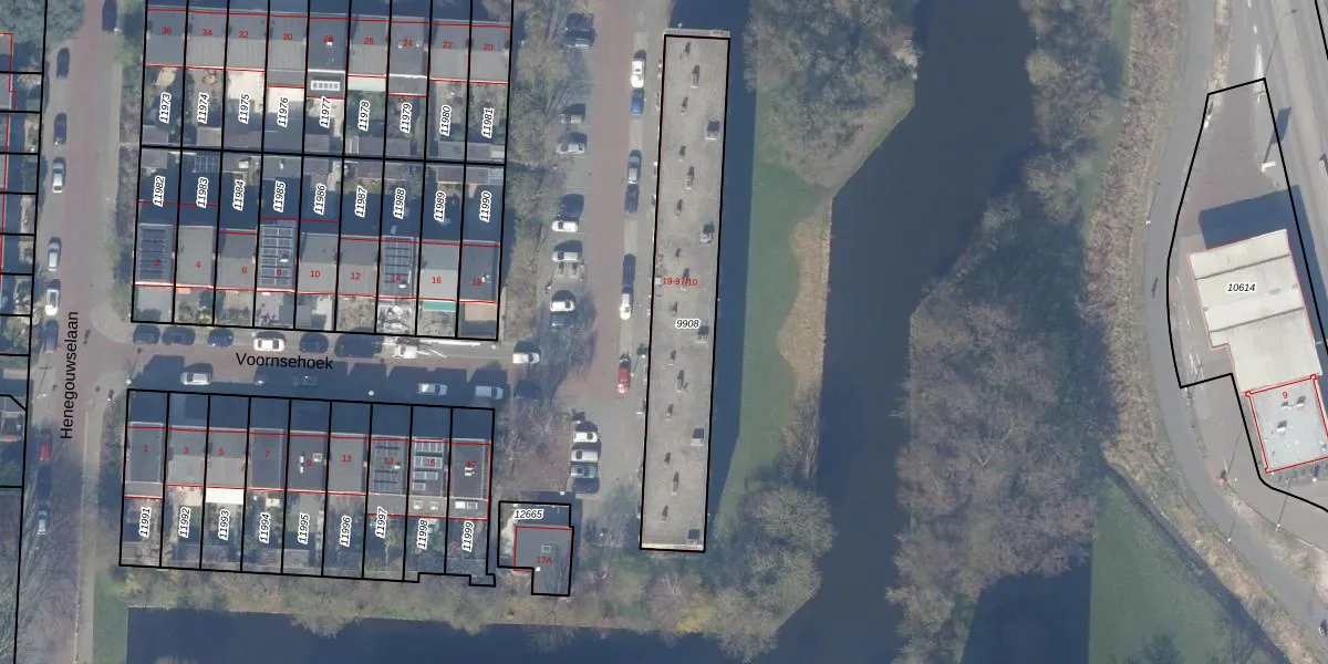 Voornsehoek 97-05 is gelegen op kadastraal perceel ASV00H9908. Deze kadastrale aanduiding is uniek en wordt gebruikt door het Kadaster om eigendomsrechten en andere zakelijke rechten vast te leggen. Het perceel maakt onderdeel uit van de kadastrale gemeente Amstelveen.