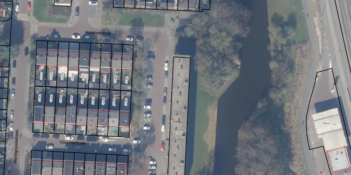 Voornsehoek 97-08 is gelegen op kadastraal perceel ASV00H9908. Deze kadastrale aanduiding is uniek en wordt gebruikt door het Kadaster om eigendomsrechten en andere zakelijke rechten vast te leggen. Het perceel maakt onderdeel uit van de kadastrale gemeente Amstelveen.