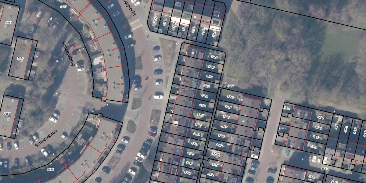 Gebruik de zoekbalk of klik op een perceel voor informatie over de adressen binnen dit perceel.