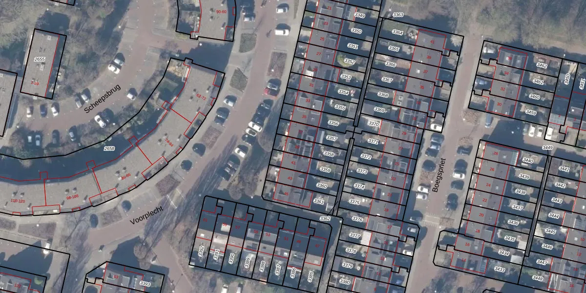 Gebruik de zoekbalk of klik op een perceel voor informatie over de adressen binnen dit perceel.