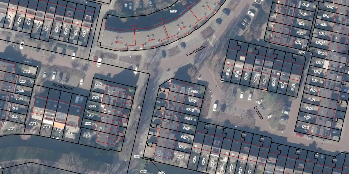 Het perceel waarop Voorplecht 63 staat heeft een oppervlakte van 176 m². Dit is een middelgroot perceel. De perceeloppervlakte wordt geregistreerd door het Kadaster. Gedetailleerde informatie over de maten van dit perceel kunt u vinden in het rapport Kadastrale kaart met maatvoering van Voorplecht 63.
