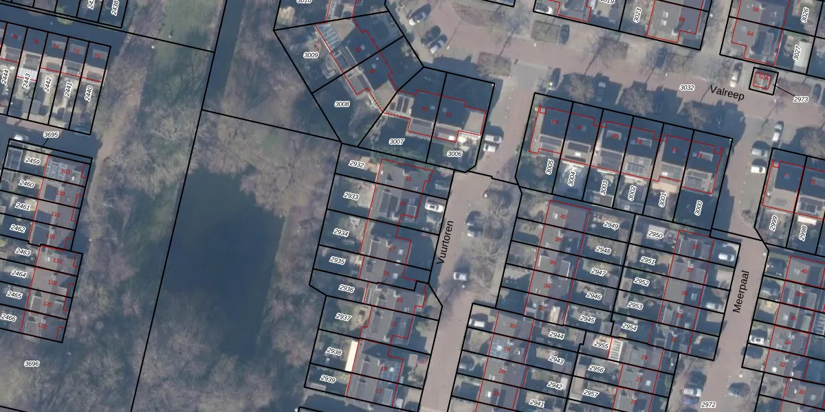 Gebruik de zoekbalk of klik op een perceel voor informatie over de adressen binnen dit perceel.