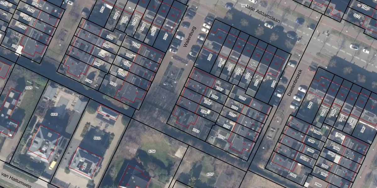 Gebruik de zoekbalk of klik op een perceel voor informatie over de adressen binnen dit perceel.