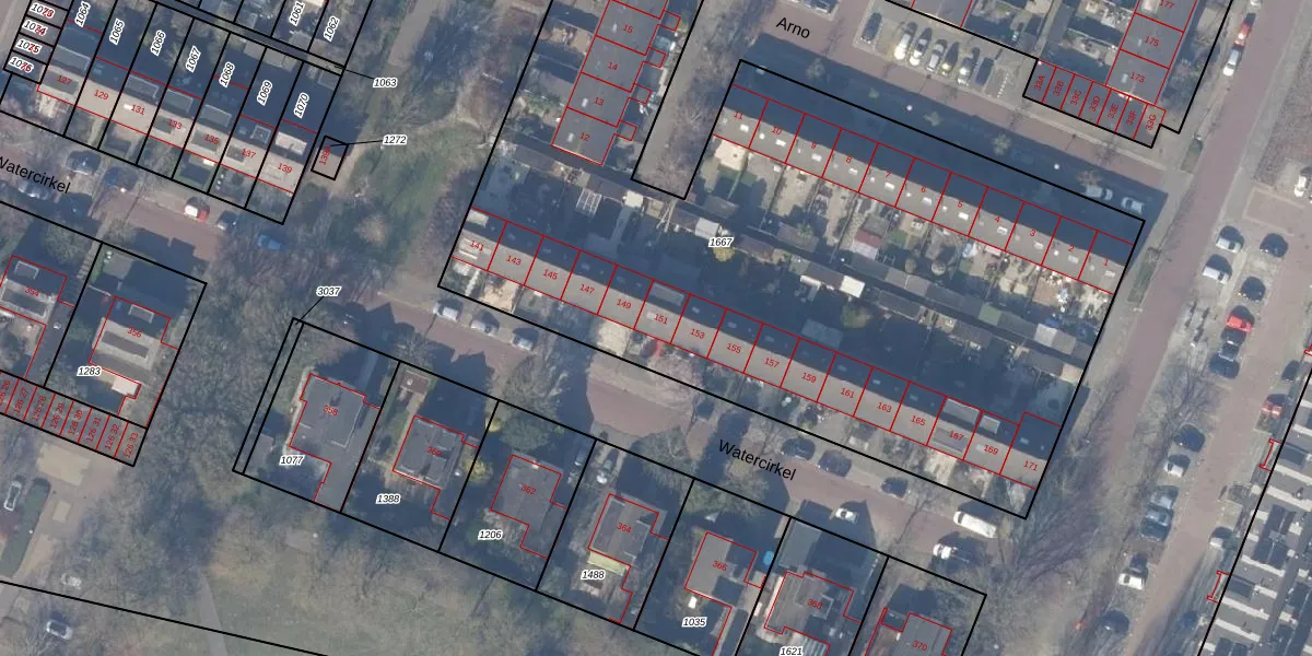 Het perceel waarop Watercirkel 151 staat heeft een oppervlakte van 5453 m². Dit is een zeer groot perceel. De perceeloppervlakte wordt geregistreerd door het Kadaster. Gedetailleerde informatie over de maten van dit perceel kunt u vinden in het rapport Kadastrale kaart met maatvoering van Watercirkel 151.