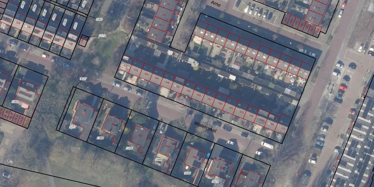 Het perceel waarop Watercirkel 153 staat heeft een oppervlakte van 5453 m². Dit is een zeer groot perceel. De perceeloppervlakte wordt geregistreerd door het Kadaster. Gedetailleerde informatie over de maten van dit perceel kunt u vinden in het rapport Kadastrale kaart met maatvoering van Watercirkel 153.