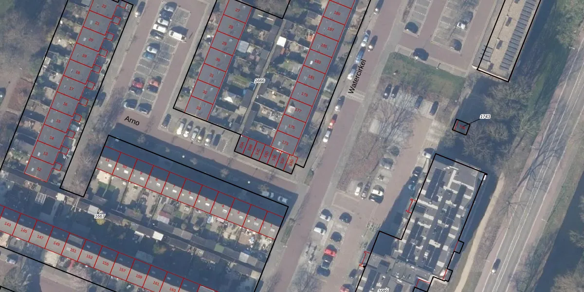 Het perceel waarop Watercirkel 173 staat heeft een oppervlakte van 2819 m². Dit is een zeer groot perceel. De perceeloppervlakte wordt geregistreerd door het Kadaster. Gedetailleerde informatie over de maten van dit perceel kunt u vinden in het rapport Kadastrale kaart met maatvoering van Watercirkel 173.