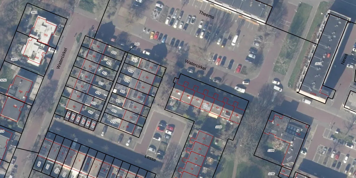 Het perceel waarop Watercirkel 51 staat heeft een oppervlakte van 2045 m². Dit is een zeer groot perceel. De perceeloppervlakte wordt geregistreerd door het Kadaster. Gedetailleerde informatie over de maten van dit perceel kunt u vinden in het rapport Kadastrale kaart met maatvoering van Watercirkel 51.
