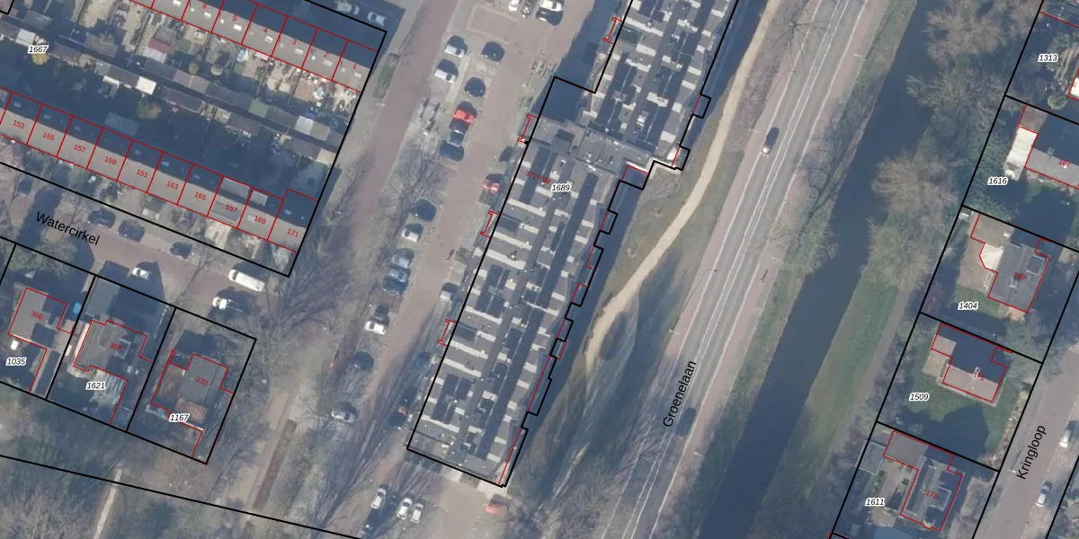 Het perceel waarop Watercirkel 542 staat heeft een oppervlakte van 2109 m². Dit is een zeer groot perceel. De perceeloppervlakte wordt geregistreerd door het Kadaster. Gedetailleerde informatie over de maten van dit perceel kunt u vinden in het rapport Kadastrale kaart met maatvoering van Watercirkel 542.