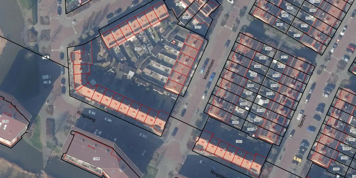Het perceel waarop Waterhoen 12 staat heeft een oppervlakte van 3693 m². Dit is een zeer groot perceel. De perceeloppervlakte wordt geregistreerd door het Kadaster. Gedetailleerde informatie over de maten van dit perceel kunt u vinden in het rapport Kadastrale kaart met maatvoering van Waterhoen 12.