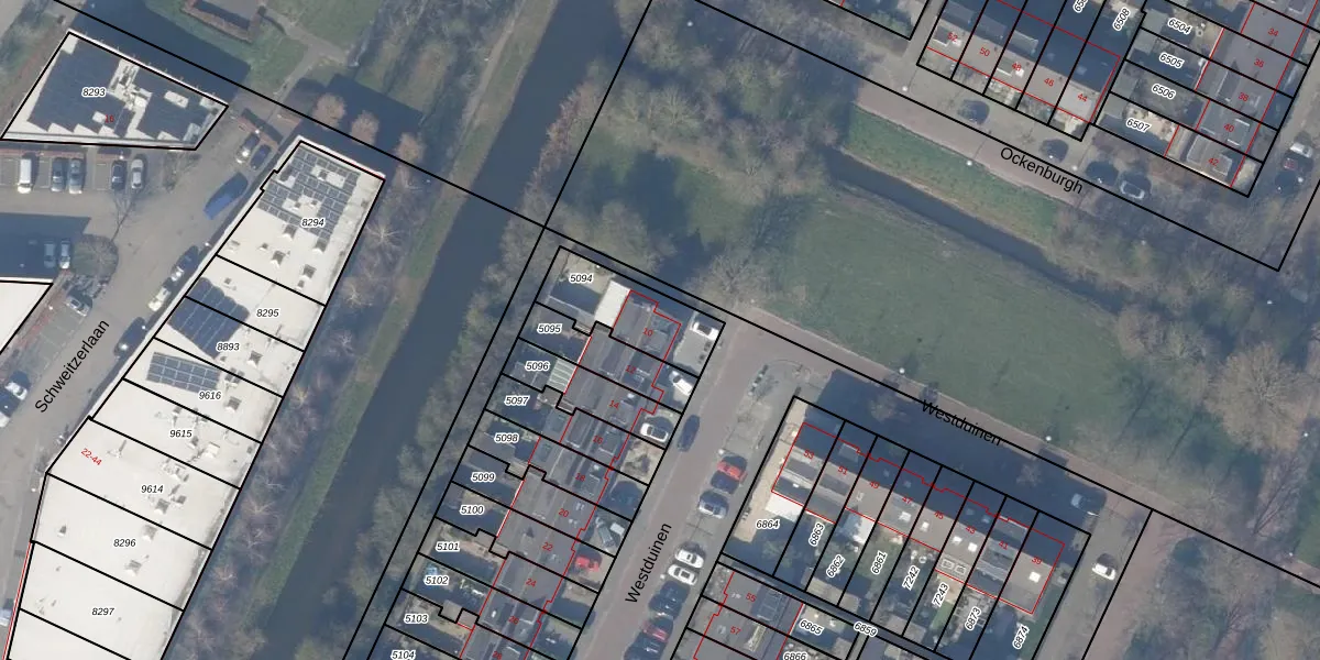 Gebruik de zoekbalk of klik op een perceel voor informatie over de adressen binnen dit perceel.