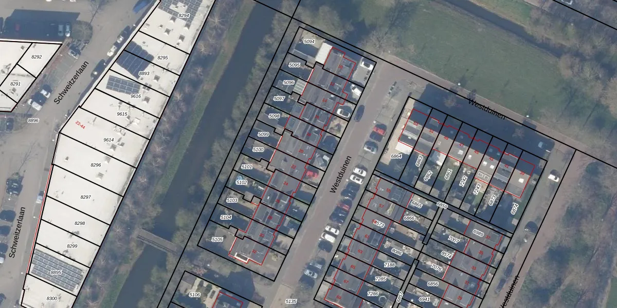 Westduinen 20 is gelegen op kadastraal perceel ASV00O5099. Deze kadastrale aanduiding is uniek en wordt gebruikt door het Kadaster om eigendomsrechten en andere zakelijke rechten vast te leggen. Het perceel maakt onderdeel uit van de kadastrale gemeente Amstelveen.