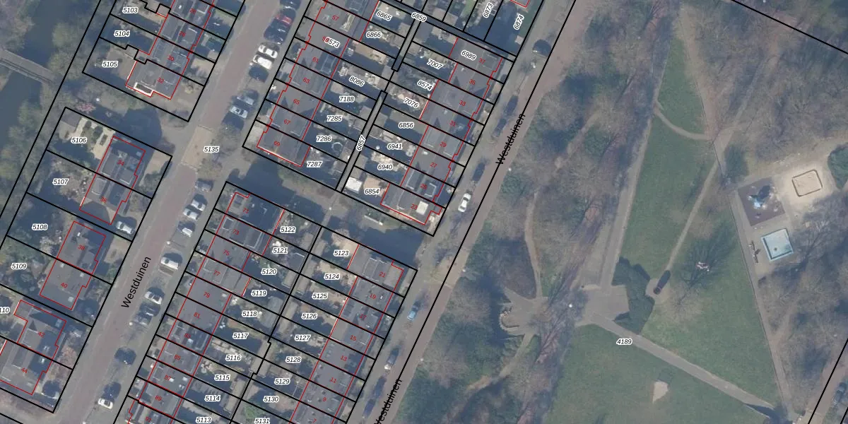 Westduinen 23 is gelegen op kadastraal perceel ASV00O6854. Deze kadastrale aanduiding is uniek en wordt gebruikt door het Kadaster om eigendomsrechten en andere zakelijke rechten vast te leggen. Het perceel maakt onderdeel uit van de kadastrale gemeente Amstelveen.