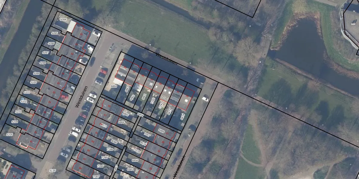 Westduinen 41 is gelegen op kadastraal perceel ASV00O6873. Deze kadastrale aanduiding is uniek en wordt gebruikt door het Kadaster om eigendomsrechten en andere zakelijke rechten vast te leggen. Het perceel maakt onderdeel uit van de kadastrale gemeente Amstelveen.