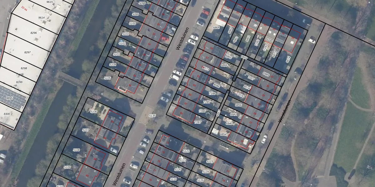 Gebruik de zoekbalk of klik op een perceel voor informatie over de adressen binnen dit perceel.
