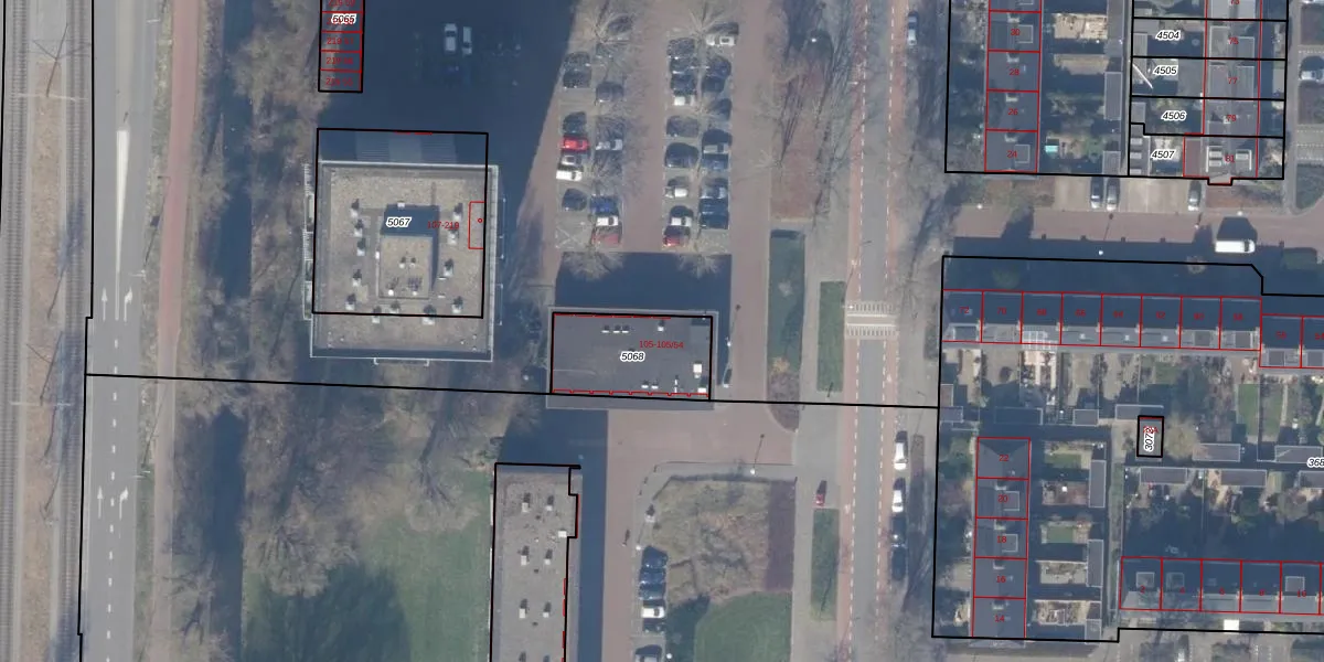 Het adres ligt op het perceel ASV00-I-5068, dat zich in de kadastrale gemeente Amstelveen bevindt. Het perceel is kleiner dan gemiddeld in Amstelveen. Het perceel is 288 m² groot, terwijl het gemiddelde ligt op 1598,37 m². De grootste perceeloppervlakte in de kadastrale gemeente is 1,78 km². De kleinste oppervlakte bedraagt 0 m². Er zijn 13 adressen aanwezig op het perceel. De laatste wijziging in het de Basisregistratie Kadaster (BRK) was op 15-10-2010.