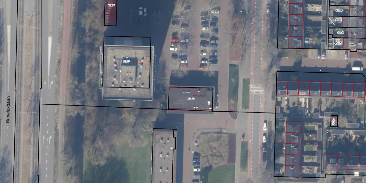 Het adres ligt op het perceel ASV00-I-5068, dat zich in de kadastrale gemeente Amstelveen bevindt. Het perceel is kleiner dan gemiddeld in Amstelveen. Het perceel is 288 m² groot, terwijl het gemiddelde ligt op 1598,6 m². De grootste perceeloppervlakte in de kadastrale gemeente is 1,78 km². De kleinste oppervlakte bedraagt 0 m². Er zijn 13 adressen aanwezig op het perceel. De laatste wijziging in het de Basisregistratie Kadaster (BRK) was op 15-10-2010.