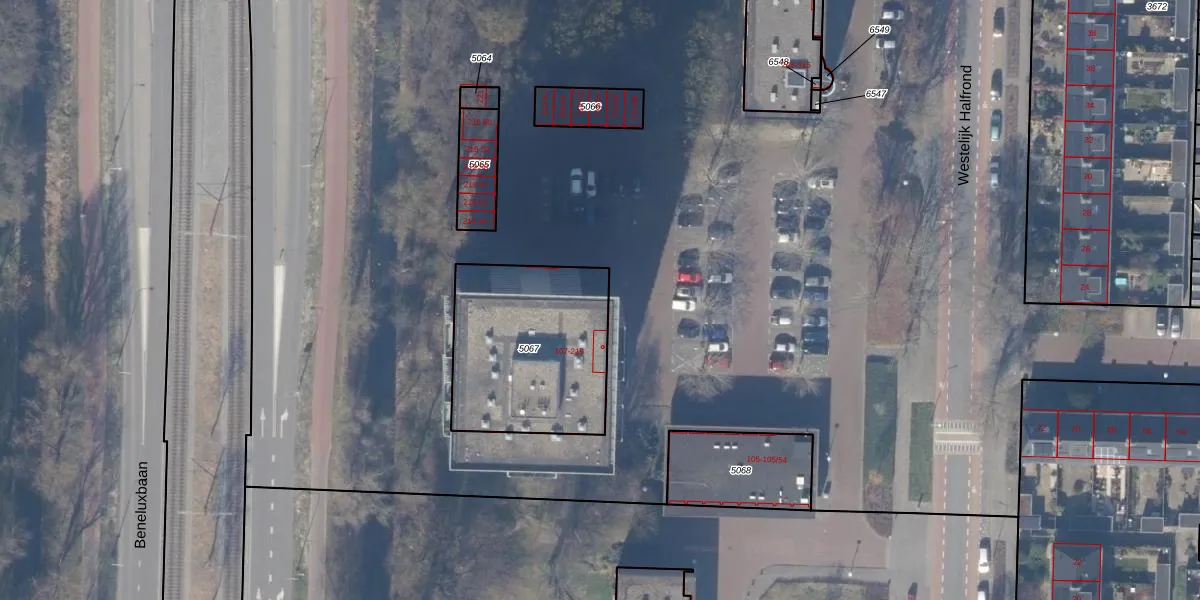 Het perceel waarop Westelijk Halfrond 219 staat heeft een oppervlakte van 713 m². Dit is een groot perceel. De perceeloppervlakte wordt geregistreerd door het Kadaster. Gedetailleerde informatie over de maten van dit perceel kunt u vinden in het rapport Kadastrale kaart met maatvoering van Westelijk Halfrond 219.