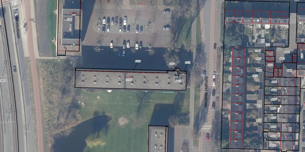 Het perceel waarop Westelijk Halfrond 321-B staat heeft een oppervlakte van 830 m². Dit is een groot perceel. De perceeloppervlakte wordt geregistreerd door het Kadaster. Gedetailleerde informatie over de maten van dit perceel kunt u vinden in het rapport Kadastrale kaart met maatvoering van Westelijk Halfrond 321-B.