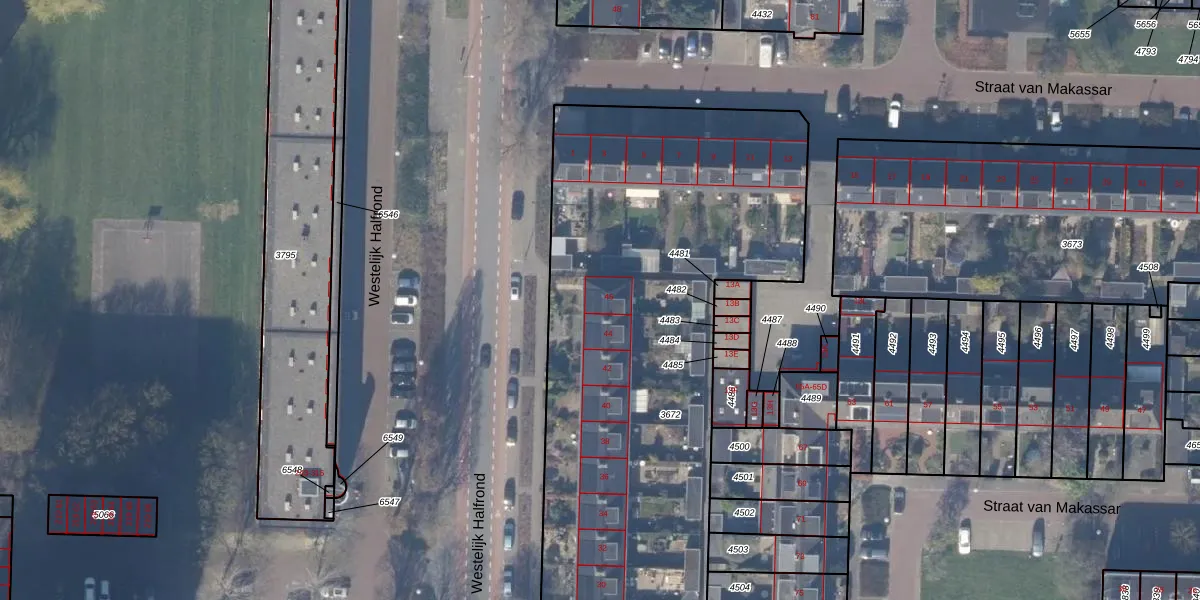 Het perceel waarop Westelijk Halfrond 46 staat heeft een oppervlakte van 3199 m². Dit is een zeer groot perceel. De perceeloppervlakte wordt geregistreerd door het Kadaster. Gedetailleerde informatie over de maten van dit perceel kunt u vinden in het rapport Kadastrale kaart met maatvoering van Westelijk Halfrond 46.