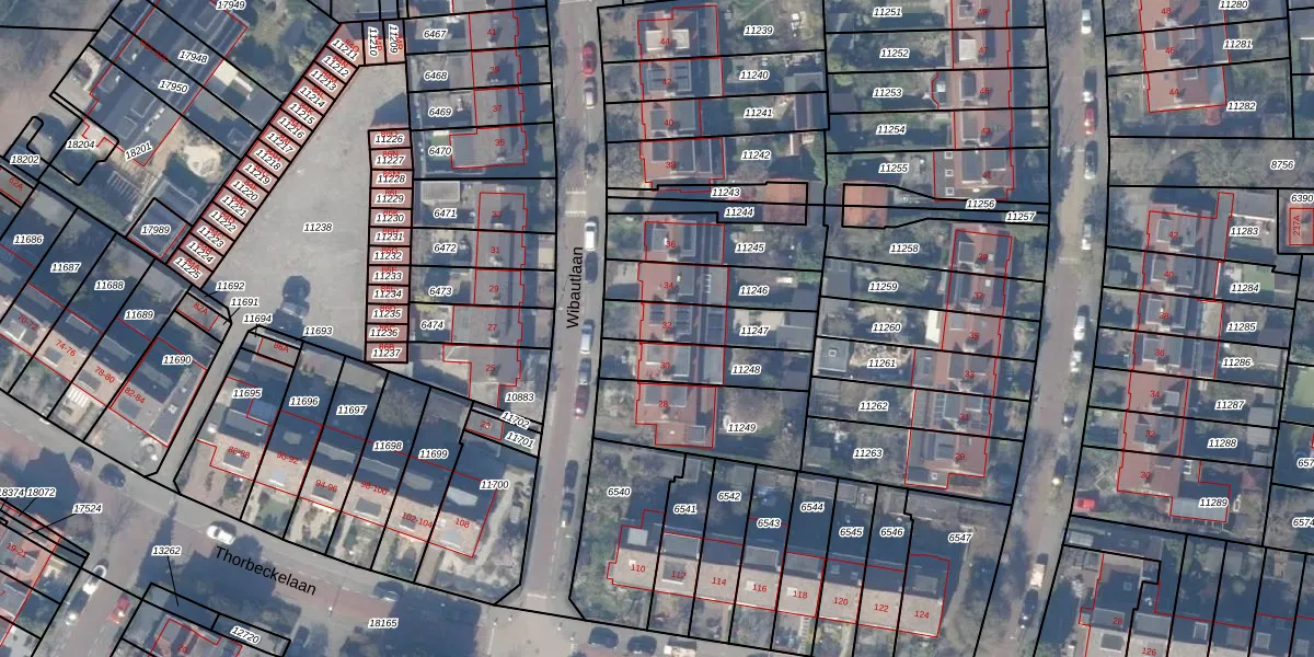 Gebruik de zoekbalk of klik op een perceel voor informatie over de adressen binnen dit perceel.