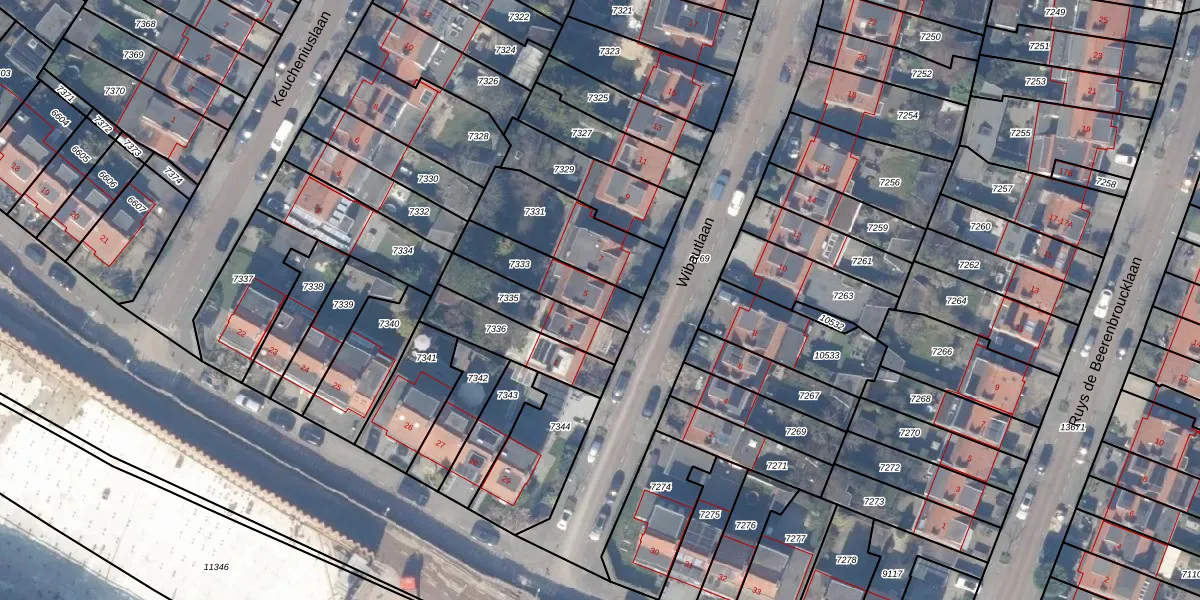 Gebruik de zoekbalk of klik op een perceel voor informatie over de adressen binnen dit perceel.