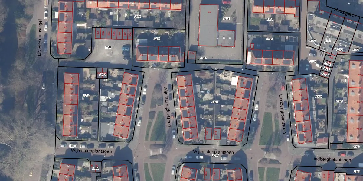 Het perceel waarop Wijnmalenplantsoen 26 staat heeft een oppervlakte van 1730 m². Dit is een zeer groot perceel. De perceeloppervlakte wordt geregistreerd door het Kadaster. Gedetailleerde informatie over de maten van dit perceel kunt u vinden in het rapport Kadastrale kaart met maatvoering van Wijnmalenplantsoen 26.