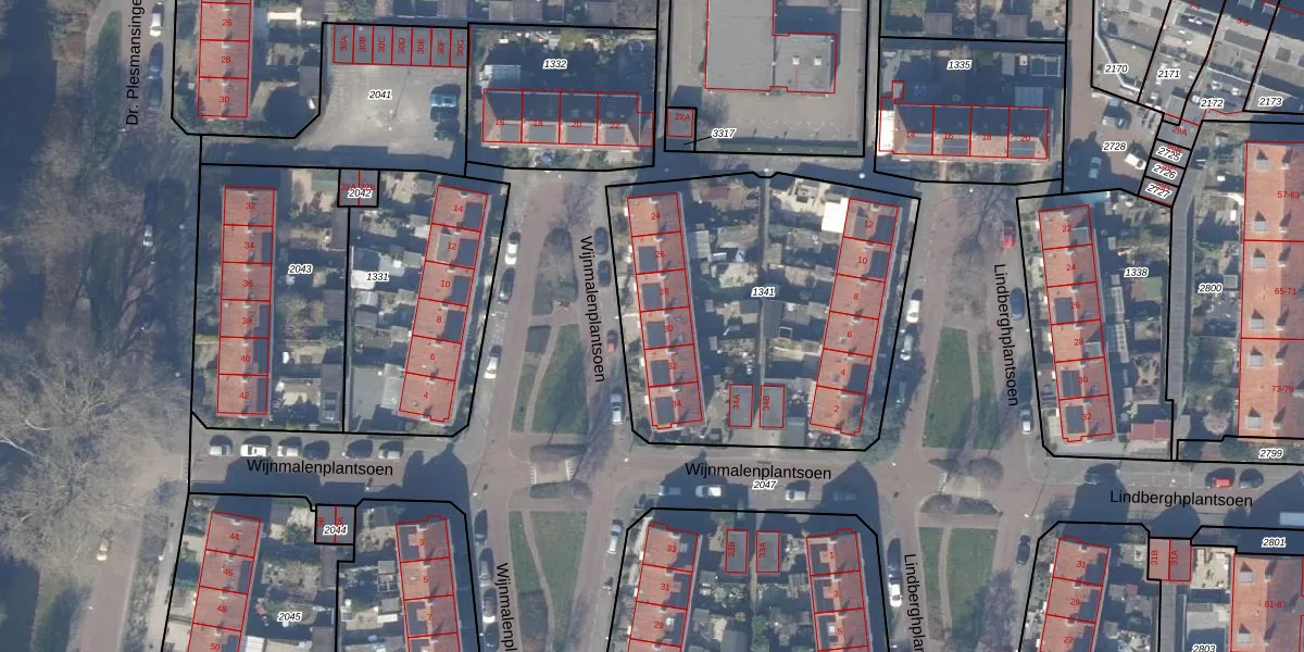 Het perceel waarop Wijnmalenplantsoen 30 staat heeft een oppervlakte van 1730 m². Dit is een zeer groot perceel. De perceeloppervlakte wordt geregistreerd door het Kadaster. Gedetailleerde informatie over de maten van dit perceel kunt u vinden in het rapport Kadastrale kaart met maatvoering van Wijnmalenplantsoen 30.