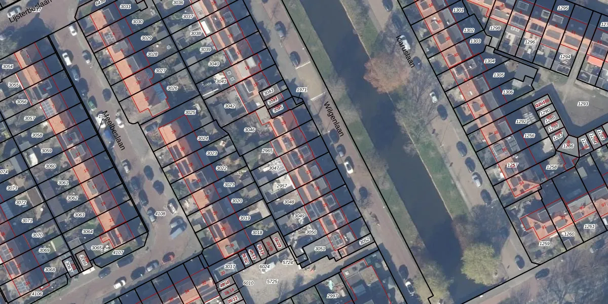 Wilgenlaan 22 is gelegen op kadastraal perceel ASV00M3047. Deze kadastrale aanduiding is uniek en wordt gebruikt door het Kadaster om eigendomsrechten en andere zakelijke rechten vast te leggen. Het perceel maakt onderdeel uit van de kadastrale gemeente Amstelveen.