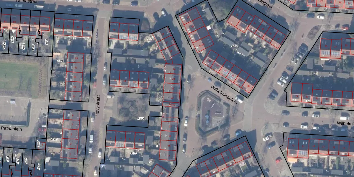 Wilhelminaplein 23 is gelegen op kadastraal perceel ASV00G4129. Deze kadastrale aanduiding is uniek en wordt gebruikt door het Kadaster om eigendomsrechten en andere zakelijke rechten vast te leggen. Het perceel maakt onderdeel uit van de kadastrale gemeente Amstelveen.