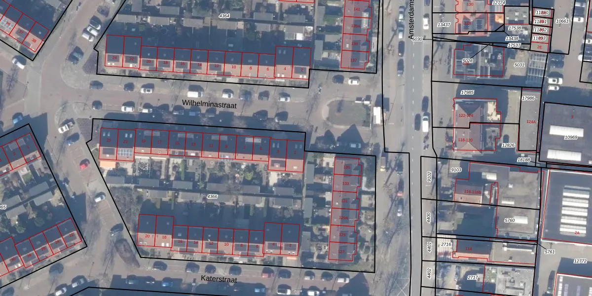 Wilhelminastraat 1 is gelegen op kadastraal perceel ASV00G4366. Deze kadastrale aanduiding is uniek en wordt gebruikt door het Kadaster om eigendomsrechten en andere zakelijke rechten vast te leggen. Het perceel maakt onderdeel uit van de kadastrale gemeente Amstelveen.