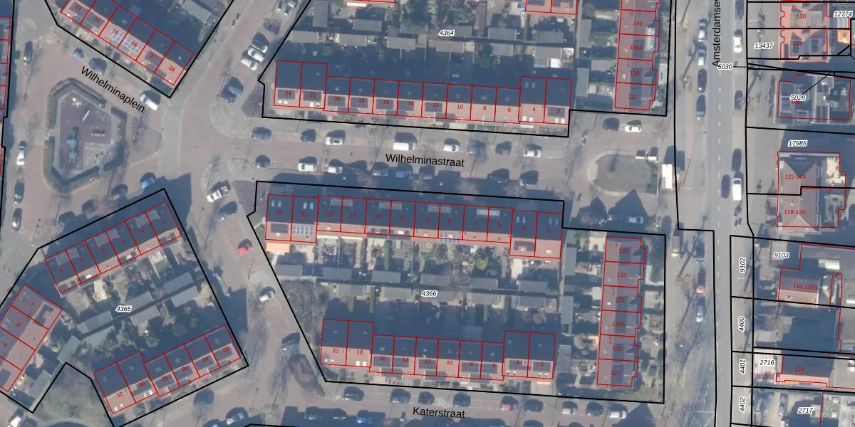 Wilhelminastraat 11 is gelegen op kadastraal perceel ASV00G4366. Deze kadastrale aanduiding is uniek en wordt gebruikt door het Kadaster om eigendomsrechten en andere zakelijke rechten vast te leggen. Het perceel maakt onderdeel uit van de kadastrale gemeente Amstelveen.