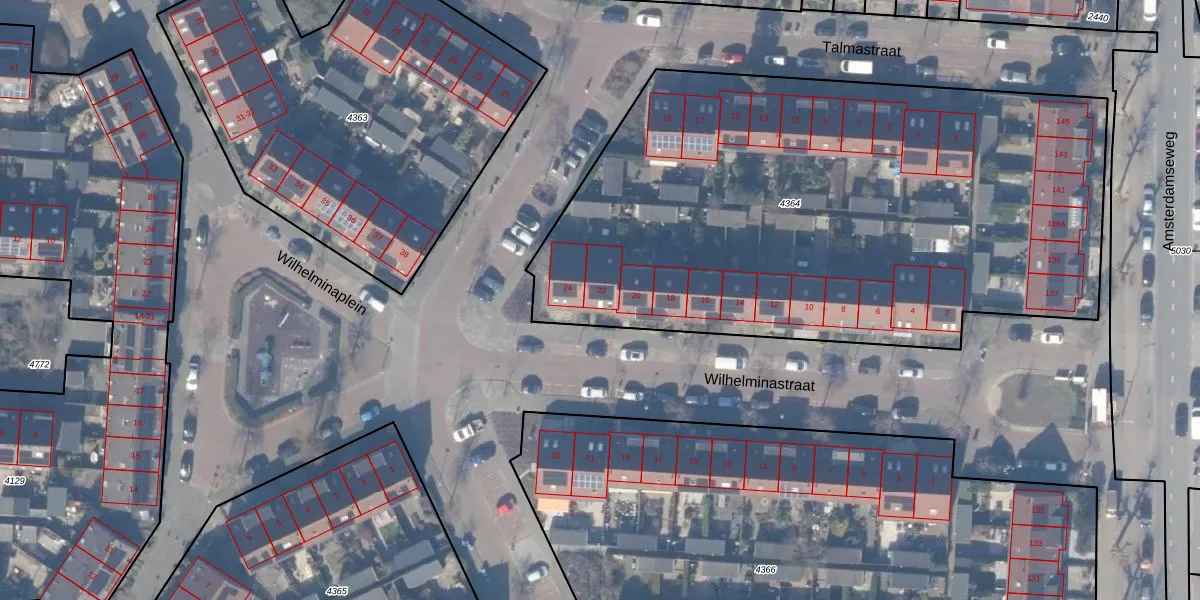 Wilhelminastraat 22 is gelegen op kadastraal perceel ASV00G4364. Deze kadastrale aanduiding is uniek en wordt gebruikt door het Kadaster om eigendomsrechten en andere zakelijke rechten vast te leggen. Het perceel maakt onderdeel uit van de kadastrale gemeente Amstelveen.