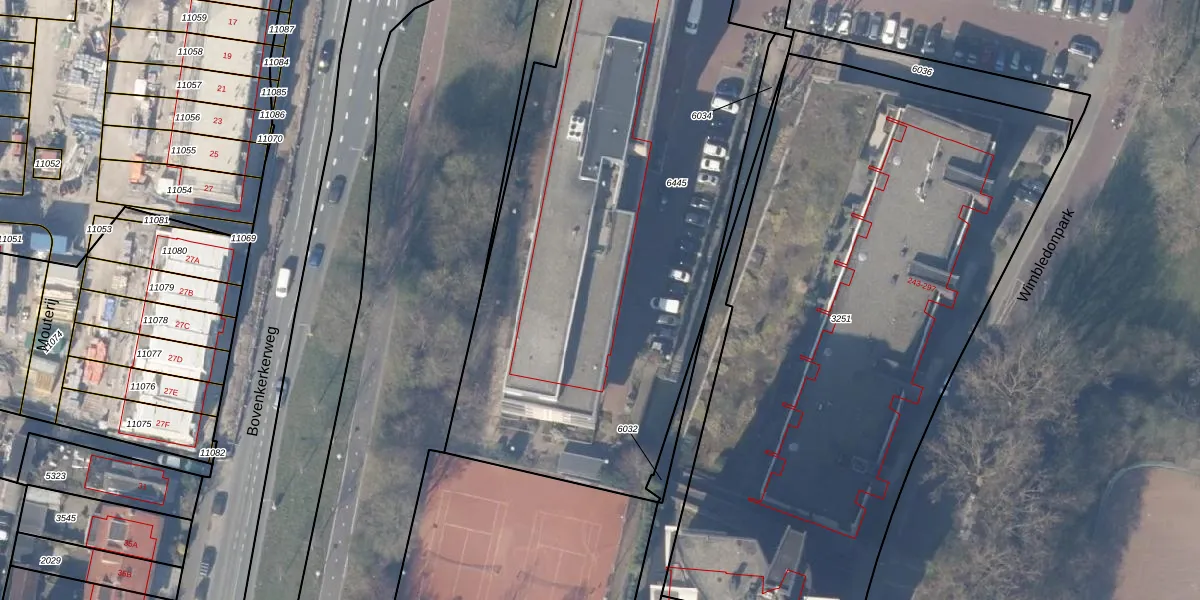 Wimbledonpark 361-415 is gelegen op kadastraal perceel ASV00M6445. Deze kadastrale aanduiding is uniek en wordt gebruikt door het Kadaster om eigendomsrechten en andere zakelijke rechten vast te leggen. Het perceel maakt onderdeel uit van de kadastrale gemeente Amstelveen.