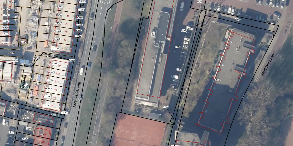 Wimbledonpark 361-416 is gelegen op kadastraal perceel ASV00M6445. Deze kadastrale aanduiding is uniek en wordt gebruikt door het Kadaster om eigendomsrechten en andere zakelijke rechten vast te leggen. Het perceel maakt onderdeel uit van de kadastrale gemeente Amstelveen.