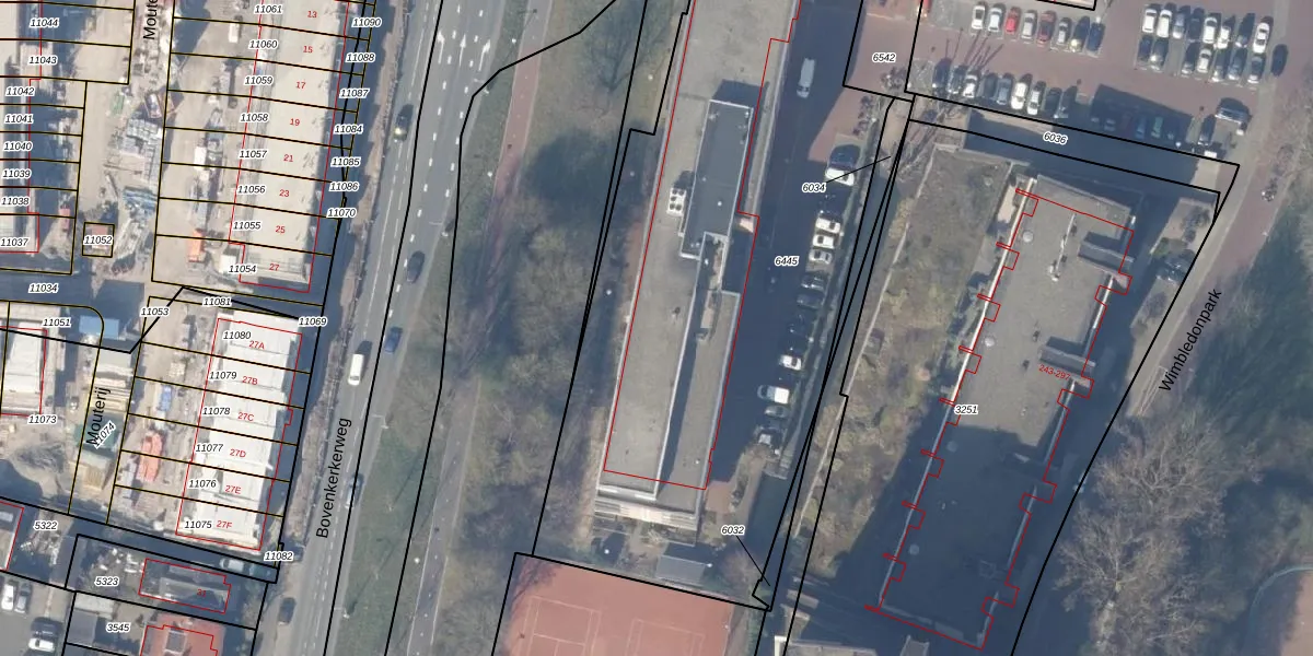 Wimbledonpark 361-513 is gelegen op kadastraal perceel ASV00M6445. Deze kadastrale aanduiding is uniek en wordt gebruikt door het Kadaster om eigendomsrechten en andere zakelijke rechten vast te leggen. Het perceel maakt onderdeel uit van de kadastrale gemeente Amstelveen.