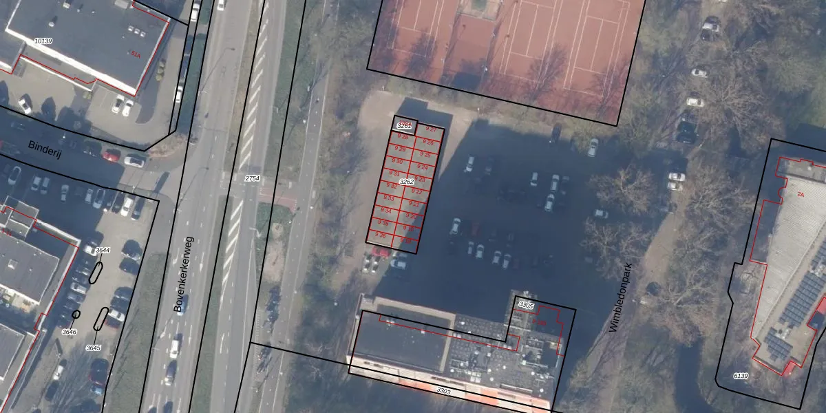 Het perceel waarop Wimbledonpark 9-21 staat heeft een oppervlakte van 378 m². Dit is een groot perceel. De perceeloppervlakte wordt geregistreerd door het Kadaster. Gedetailleerde informatie over de maten van dit perceel kunt u vinden in het rapport Kadastrale kaart met maatvoering van Wimbledonpark 9-21.