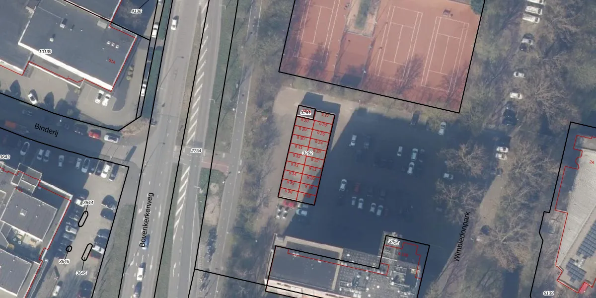 Het perceel waarop Wimbledonpark 9-31 staat heeft een oppervlakte van 378 m². Dit is een groot perceel. De perceeloppervlakte wordt geregistreerd door het Kadaster. Gedetailleerde informatie over de maten van dit perceel kunt u vinden in het rapport Kadastrale kaart met maatvoering van Wimbledonpark 9-31.