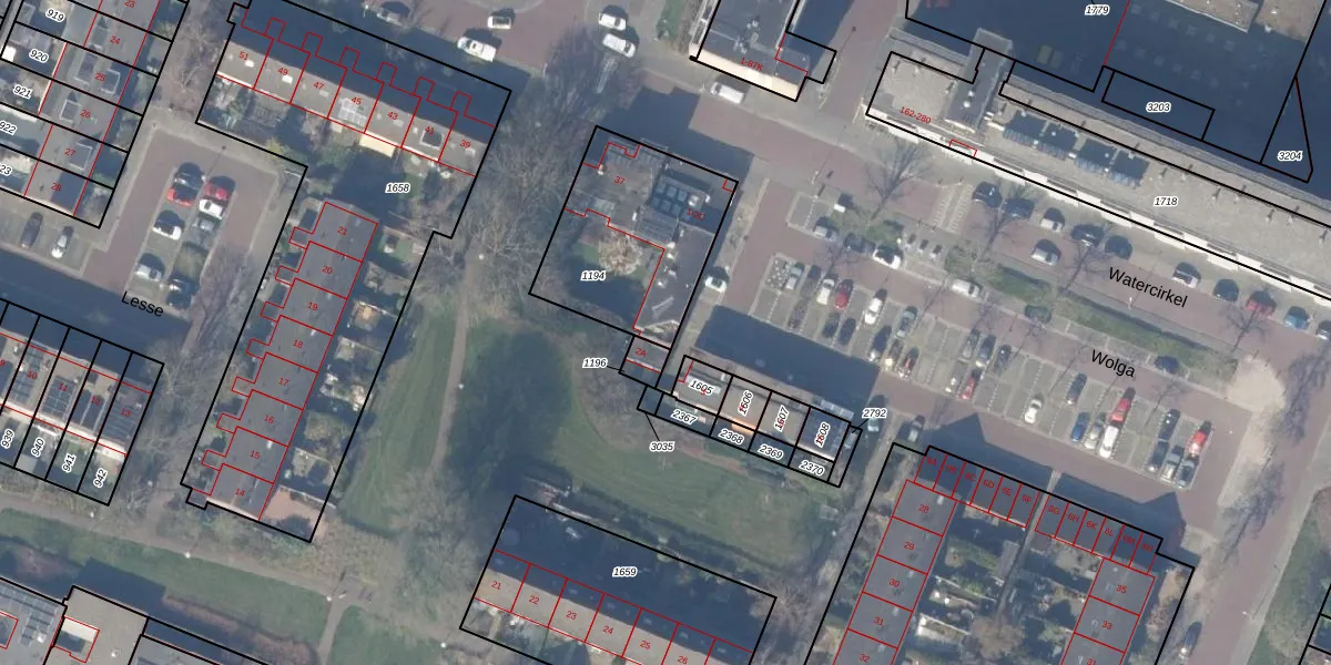 Het perceel waarop Wolga 2-B staat heeft een oppervlakte van 625 m². Dit is een groot perceel. De perceeloppervlakte wordt geregistreerd door het Kadaster. Gedetailleerde informatie over de maten van dit perceel kunt u vinden in het rapport Kadastrale kaart met maatvoering van Wolga 2-B.