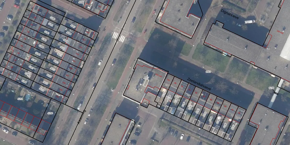 Het perceel waarop Zeelandiahoeve 114 staat heeft een oppervlakte van 614 m². Dit is een groot perceel. De perceeloppervlakte wordt geregistreerd door het Kadaster. Gedetailleerde informatie over de maten van dit perceel kunt u vinden in het rapport Kadastrale kaart met maatvoering van Zeelandiahoeve 114.