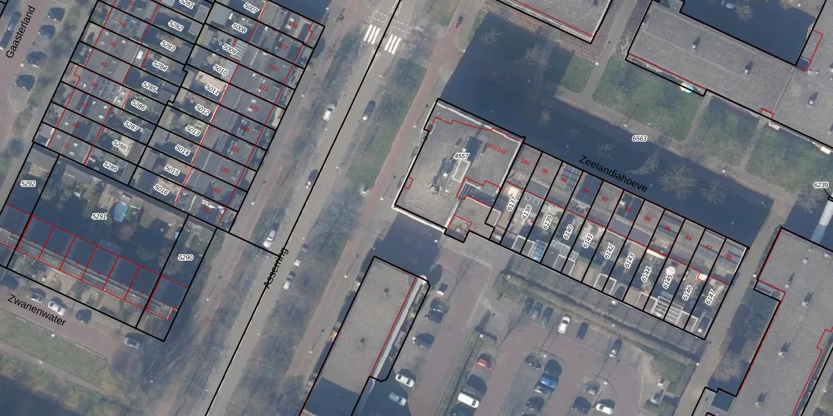 Zeelandiahoeve 142 is gelegen op kadastraal perceel ASV00O4557. Deze kadastrale aanduiding is uniek en wordt gebruikt door het Kadaster om eigendomsrechten en andere zakelijke rechten vast te leggen. Het perceel maakt onderdeel uit van de kadastrale gemeente Amstelveen.