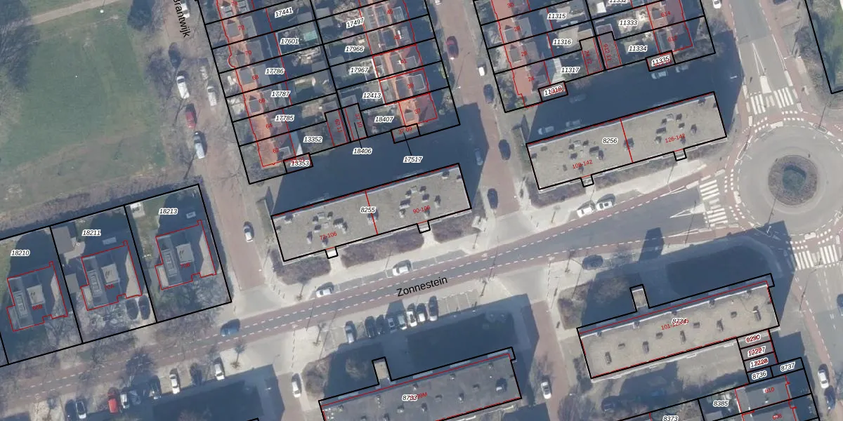 Het perceel waarop Zonnestein 102 staat heeft een oppervlakte van 525 m². Dit is een groot perceel. De perceeloppervlakte wordt geregistreerd door het Kadaster. Gedetailleerde informatie over de maten van dit perceel kunt u vinden in het rapport Kadastrale kaart met maatvoering van Zonnestein 102.