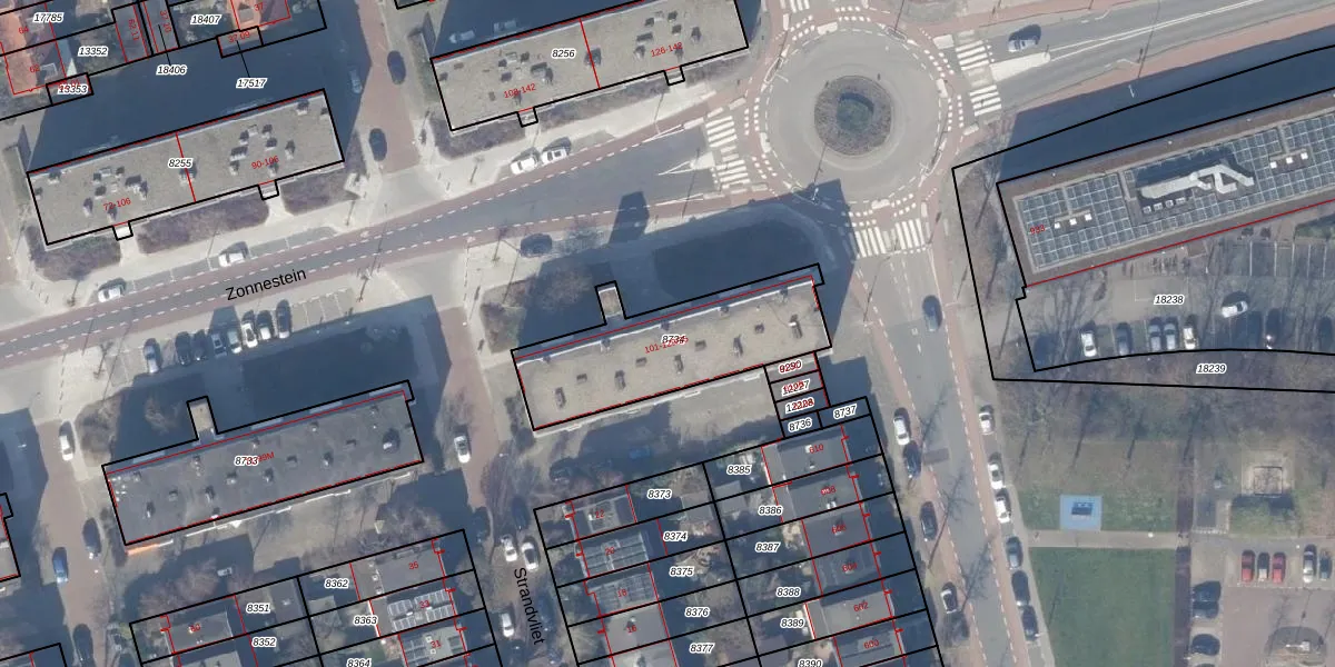 Het perceel waarop Zonnestein 107 staat heeft een oppervlakte van 597 m². Dit is een groot perceel. De perceeloppervlakte wordt geregistreerd door het Kadaster. Gedetailleerde informatie over de maten van dit perceel kunt u vinden in het rapport Kadastrale kaart met maatvoering van Zonnestein 107.