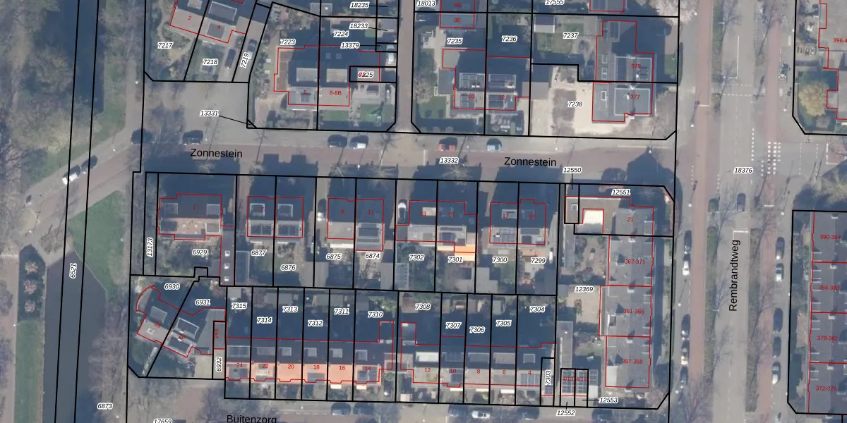 Het perceel waarop Zonnestein 13 staat heeft een oppervlakte van 255 m². Dit is een middelgroot perceel. De perceeloppervlakte wordt geregistreerd door het Kadaster. Gedetailleerde informatie over de maten van dit perceel kunt u vinden in het rapport Kadastrale kaart met maatvoering van Zonnestein 13.