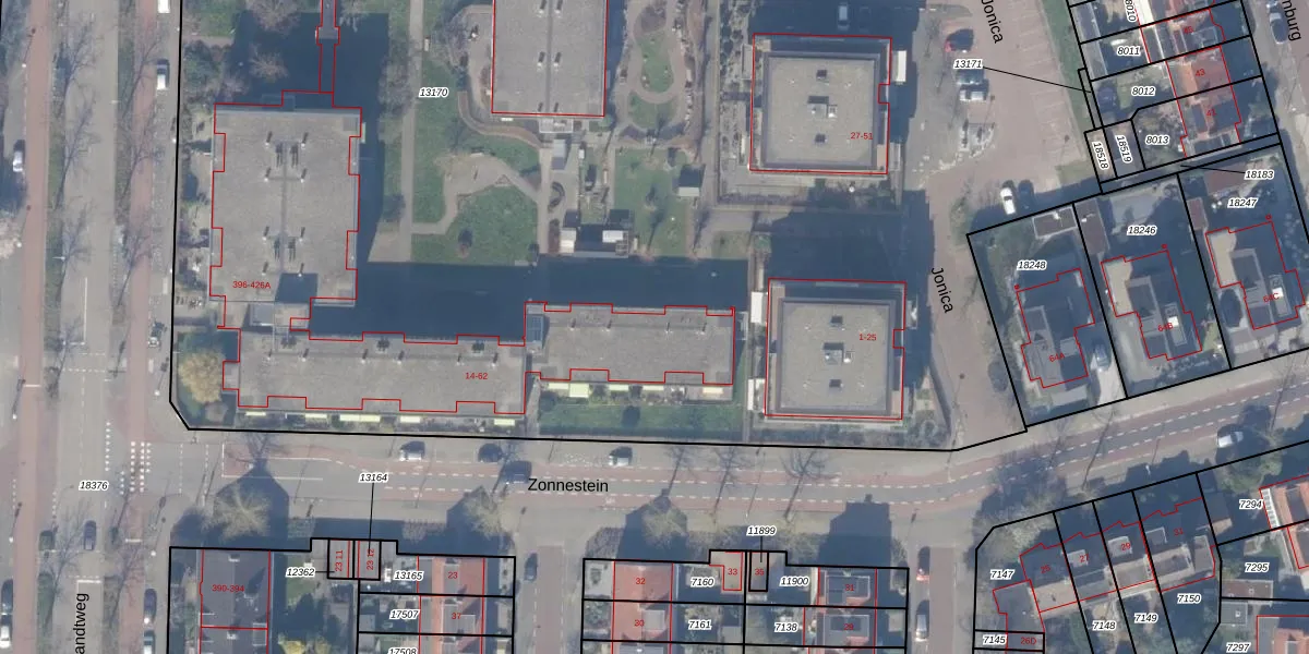 Zonnestein 28 is gelegen op kadastraal perceel ASV00H13170. Deze kadastrale aanduiding is uniek en wordt gebruikt door het Kadaster om eigendomsrechten en andere zakelijke rechten vast te leggen. Het perceel maakt onderdeel uit van de kadastrale gemeente Amstelveen.