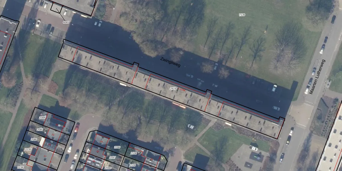 Zwingliweg 1 is gelegen op kadastraal perceel ASV00M2419. Deze kadastrale aanduiding is uniek en wordt gebruikt door het Kadaster om eigendomsrechten en andere zakelijke rechten vast te leggen. Het perceel maakt onderdeel uit van de kadastrale gemeente Amstelveen.