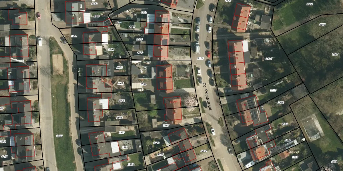 Dr. Poelsstraat 28 is gelegen op kadastraal perceel ASR00A2531. Deze kadastrale aanduiding is uniek en wordt gebruikt door het Kadaster om eigendomsrechten en andere zakelijke rechten vast te leggen. Het perceel maakt onderdeel uit van de kadastrale gemeente Amstenrade.